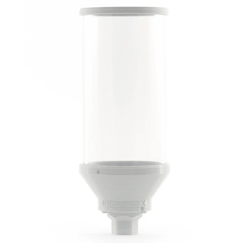 The AutoThrow powder hopper is made from PETG and incorporates a valve which blocks the flow when rotated. This hopper holds over 1 lb of powder. Hopper cover included.